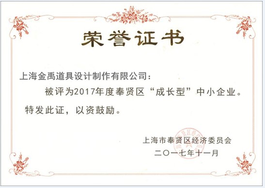热烈恭贺我们公司获得上海市2017年奉贤区“成长型”中小企业称号